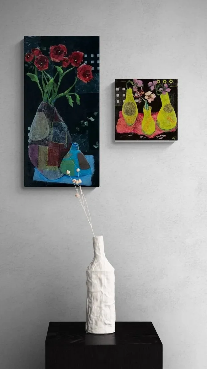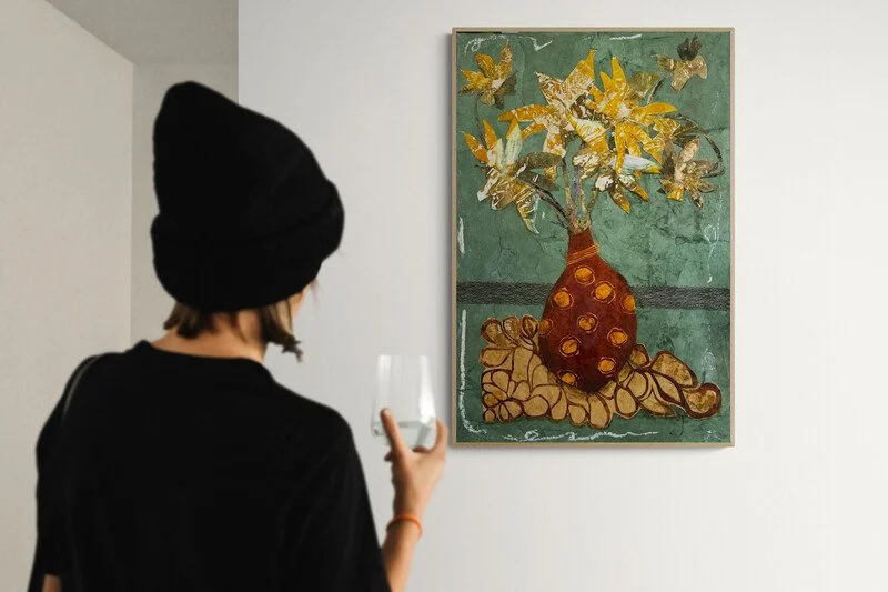 Make a statement, elevate your surroundings, and express your individuality with art that stands out and is a conversation starter. Invest in yourself, and become a collector of my original collage paintings. Sign up to be put on the collector list Categories: All Scapes Abstract Small Collages Landscape Abstract JoomChi Still Life Home All | Scapes | Abstract | Small Collages | Landscape Abstract | JoomChi | Still Life | Fish out of Water 2 $165.00 Add To Cart Added! Fish out of water 1 $165.00 Add To Cart Added! Clay Vase, Sunflowers (24w x 35h x .78d) $750.00 Add To Cart Added! Ikebana 3 (12 x 12 x 1.5) $330.00 Add To Cart Added! Ikebana 2 (16 x 16 x 1.5) $550.00 Buy Now Added! Ikebana 1 (16 x 20 x 1.5) $650.00 Buy Now Added! Harbor At Dusk (20w x 20H x 1.5d) $495.00 Add To Cart Added! Cardboard Regatta $95.00 Add To Cart Added! Chasing the Wind $150.00 Add To Cart Added! Bringing It Home $150.00 Add To Cart Added! Aperol Spritz (8w x 8h x 1.5) $150.00 Add To Cart Added! Table Setting (8w x 8h x 1.5d) $150.00 Add To Cart Added! Perks (8w x 8H x 1.5d) $150.00 Add To Cart Added! Lemon Vase (11w x 14h x .78d) $465.00 Add To Cart Added! Division Street Bridge Print $55.00 Add To Cart Added! Michigan Fish Hut Print $55.00 Add To Cart Added! Bridge Up on State Print $55.00 Add To Cart Added! Clay Vases (18w x 24h x .78d) $675.00 Add To Cart Added! Paris Prints $55.00 Add To Cart Added! Interplay of Colors (24 w x 36 h x 1.5 d) $750.00 Add To Cart Added! Swoon (10 x 10 x1.5) $150.00 Add To Cart Added! Poppies (12w x 24h x 2d) $400.00 Add To Cart Added! The Family (24w x 36L x .78d) Sale Price: $650.00 Original Price: $750.00 Sale Add To Cart Added! Roses and Whiskey $450.00 Add To Cart Added! Stone Garden $275.00 Add To Cart Added! My Kitchen to Your Kitchen $180.00 Add To Cart Added! Happy Mouse and Black Bat $20.00 Add To Cart Added! Monster Riff $525.00 Add To Cart Added! Louie the Dragon $850.00 Add To Cart Added! Hanging Narrative $450.00 Add To Cart Added! Paper quilt (13 h x 9.5w x .5d) $325.00 Add To Cart Added! Blue Moon (6.5w x 6.5 h x 1 d) $225.00 Add To Cart Added! Pink Sunset (8w x 8h x 1) $275.00 Add To Cart Added! Clay Vase of Sunflowers $750.00 Add To Cart Added! Japanese Tea 1 (12w x 12h x .78) $275.00 Add To Cart Added! Japanese Tea 2 (12w x 12xh x .78) $275.00 Add To Cart Added! Stormy Sea $450.00 Add To Cart Added! Royalty (24w x 24h x .78d) Sale Price: $450.00 Original Price: $600.00 Sale Add To Cart Added! Overgrown Garden $275.00 Add To Cart Added! The Florist Table ( 36w x 24h x 1.5d) $750.00 Add To Cart Added! Roadside Wild Flowers $275.00 Add To Cart Added! Vase a fleurs (12 w x 12h x .78d) $275.00 Add To Cart Added! Naturaleza-Muerta $275.00 Add To Cart Added! Golden Pears (10w x 10L x .78d) $275.00 Add To Cart Added!